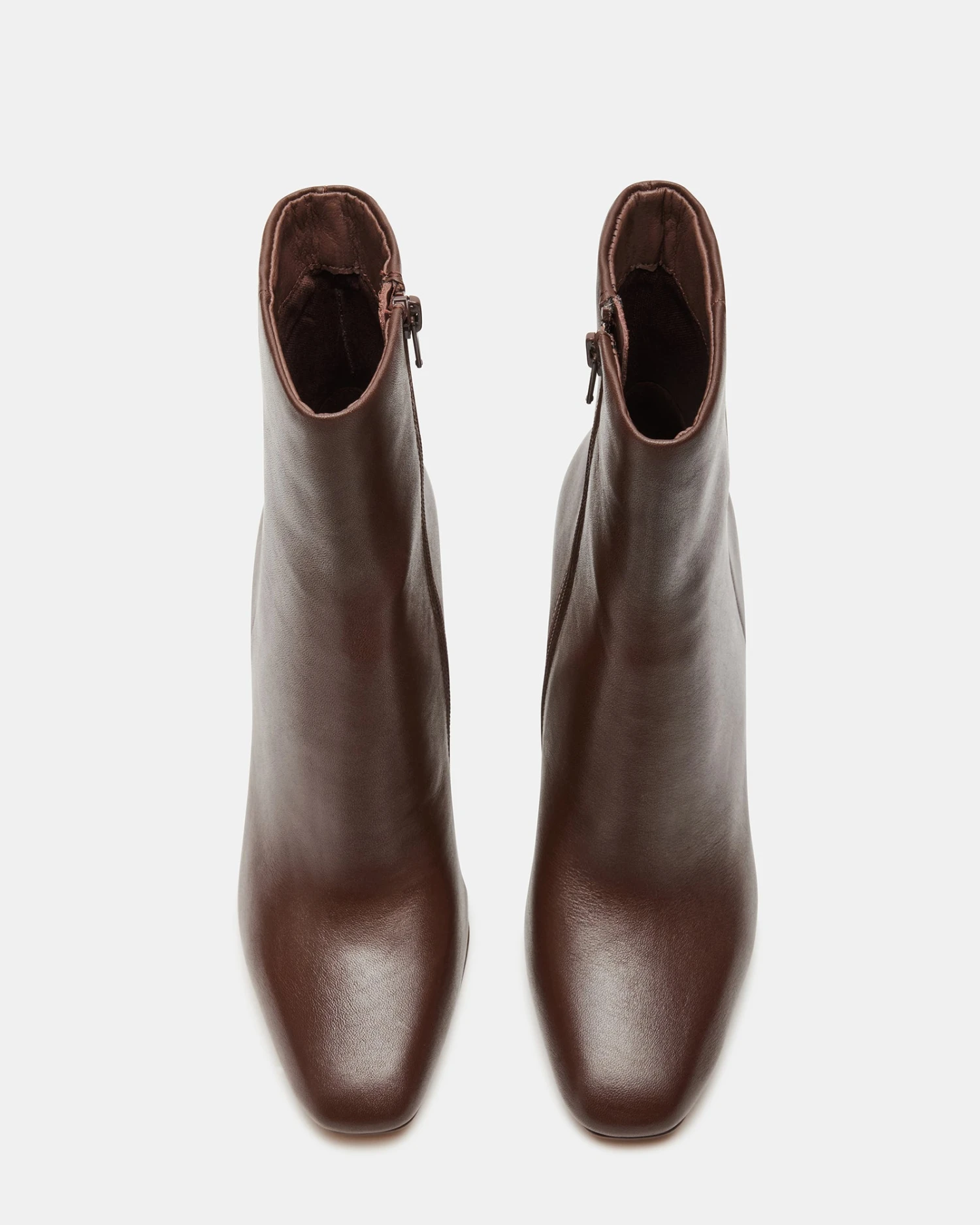 The ALLISON bootie is a sleek and smooth monochrome design with a narrow block heel and snipped toe defining the angular silhouette.