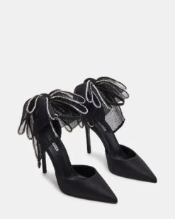 The ANTOINETTE is a pointed toe pump heel featuring a stunning rhinestone bow detail and a delicate glitter design. Combining elegance and sophistication, these heels add a touch of glamour to any outfit. The pointed toe design provides a flattering and chic look, while the glitter adds a unique and feminine touch. With the added sparkle of the rhinestone bow, these heels are perfect for any special occasion.
