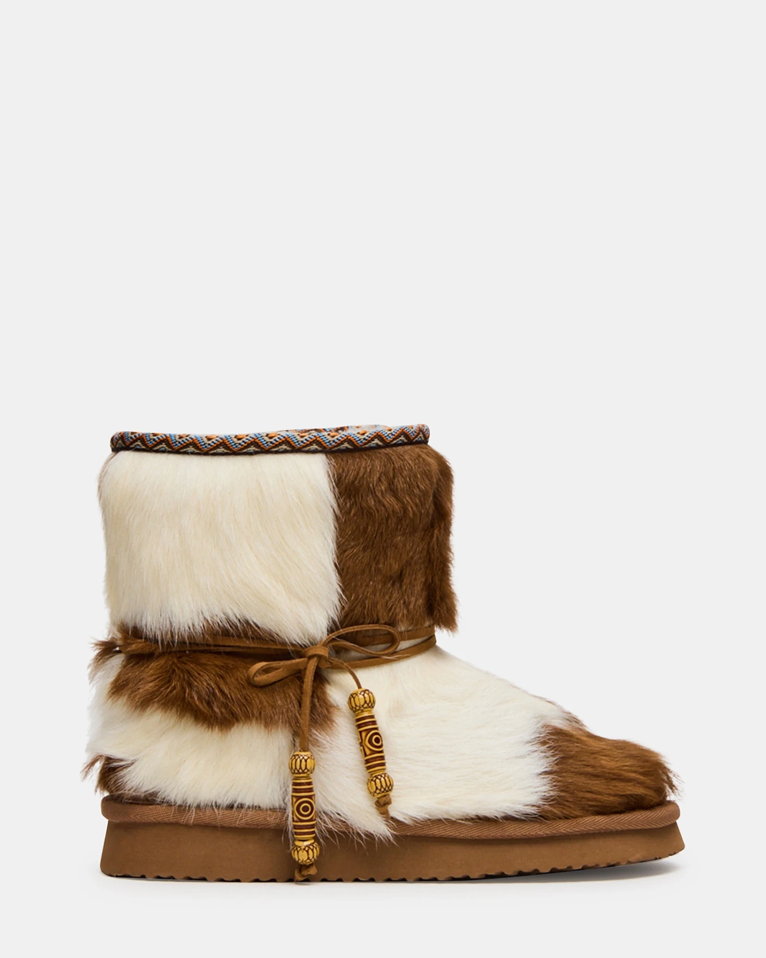Introducing the CATTLEI faux fur ankle boot! This stylish bootie features a unique cow print design, adding a touch of fun to any outfit. With its comfy faux fur lining, your feet will stay warm and comfortable all day long. Elevate your winter wardrobe with this must-have boot.