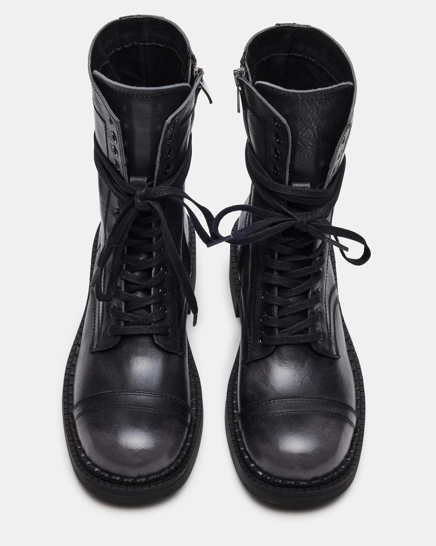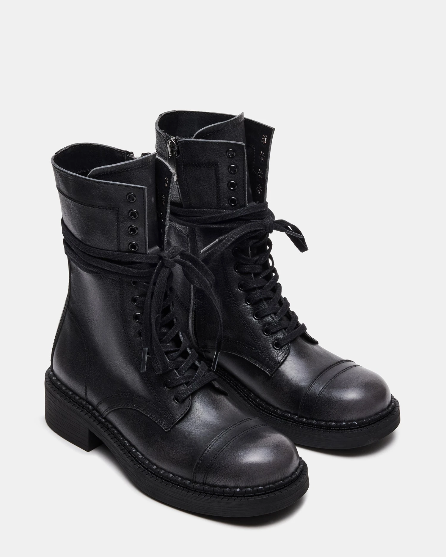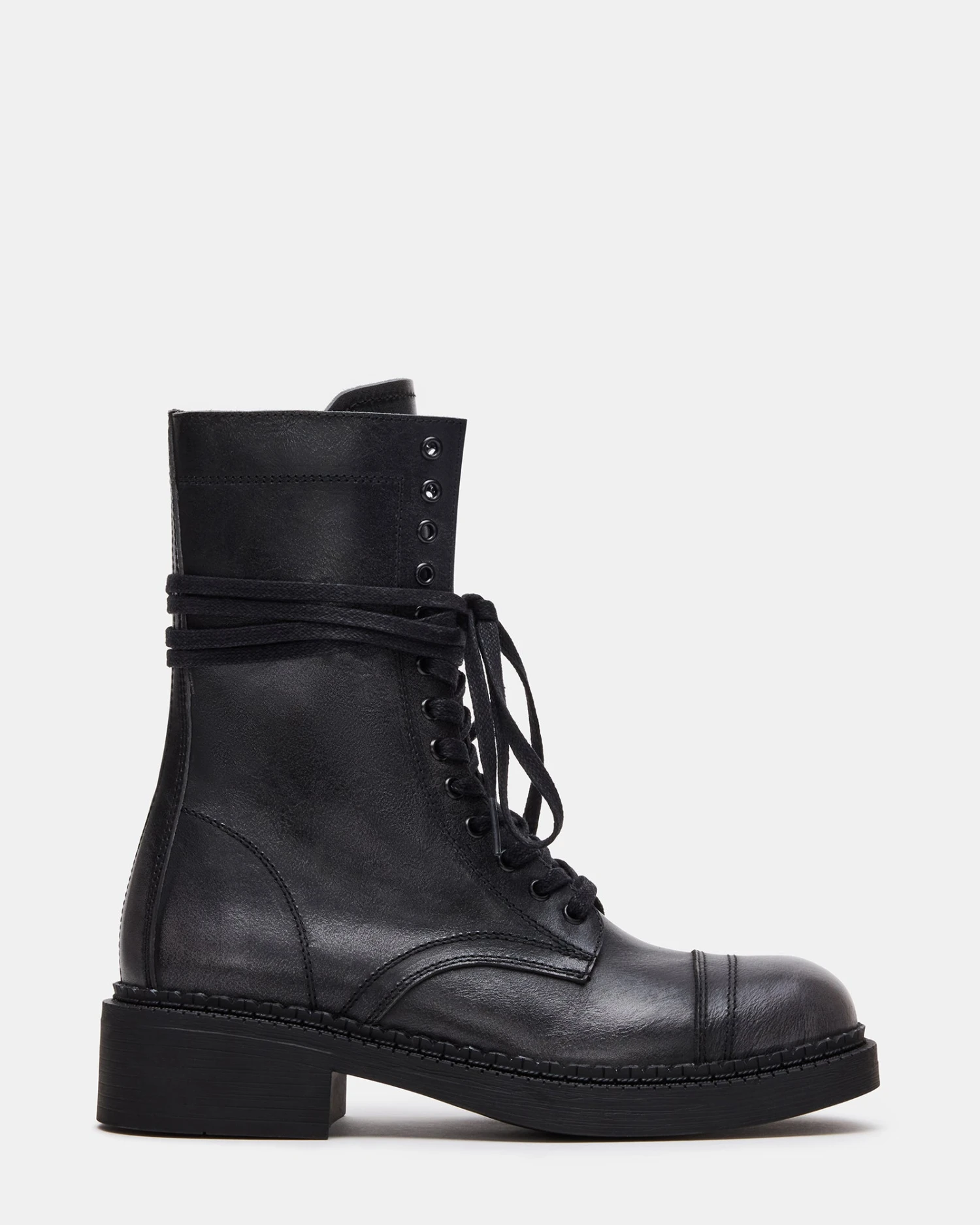Expertly crafted, the CRIMSON bootie features a trendy moto style and durable lace-up design. These combat boots are perfect for adding a touch of edge to your wardrobe while providing comfort and resilience for daily wear.