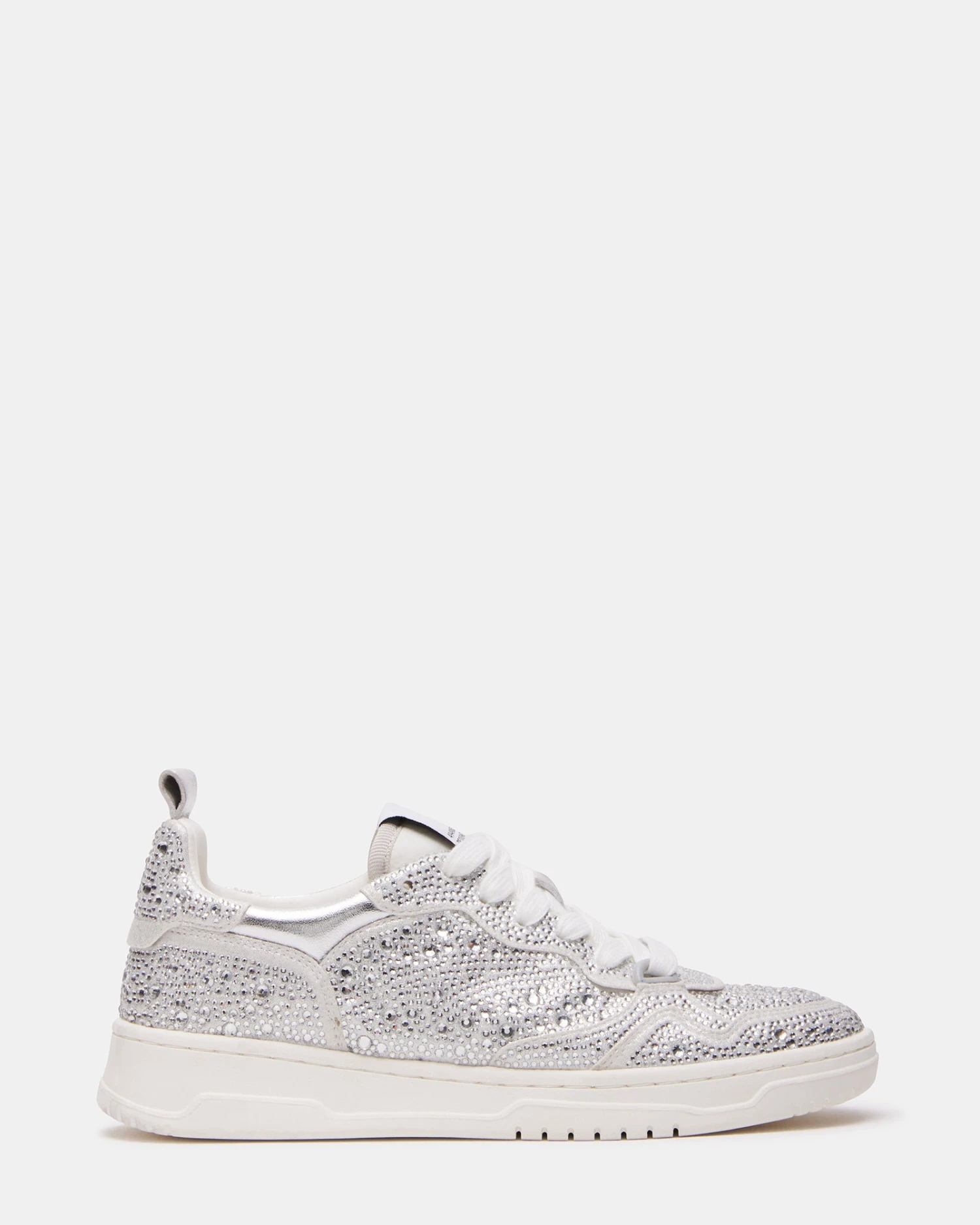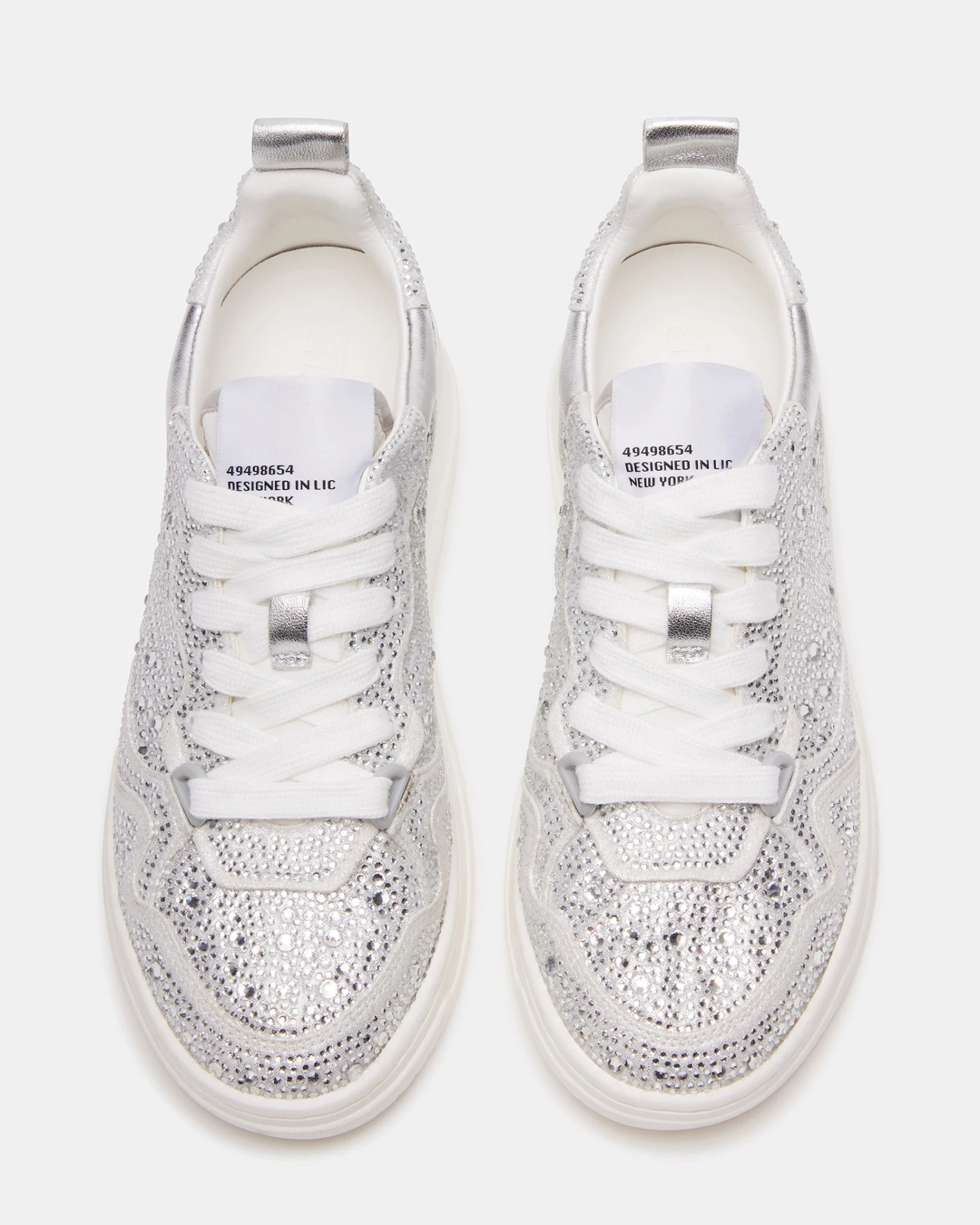 EVERLIE pairs a soft rubber sole with a supple leather construction for easy movement and flexible support. A memory foam footbed adds internal comfort. The tapered toe, low flatform base, and padded ankle collar give this style a uniquely flattering and versatile silhouette. With 6 different color variations (and counting!), the EVERLIE has a spot in even the pickiest sneakerhead’s collection. This fully rhinestoned edition adds tons of sparkle to the look, with stones of varying sizes ensuring that they catch the light with every step.