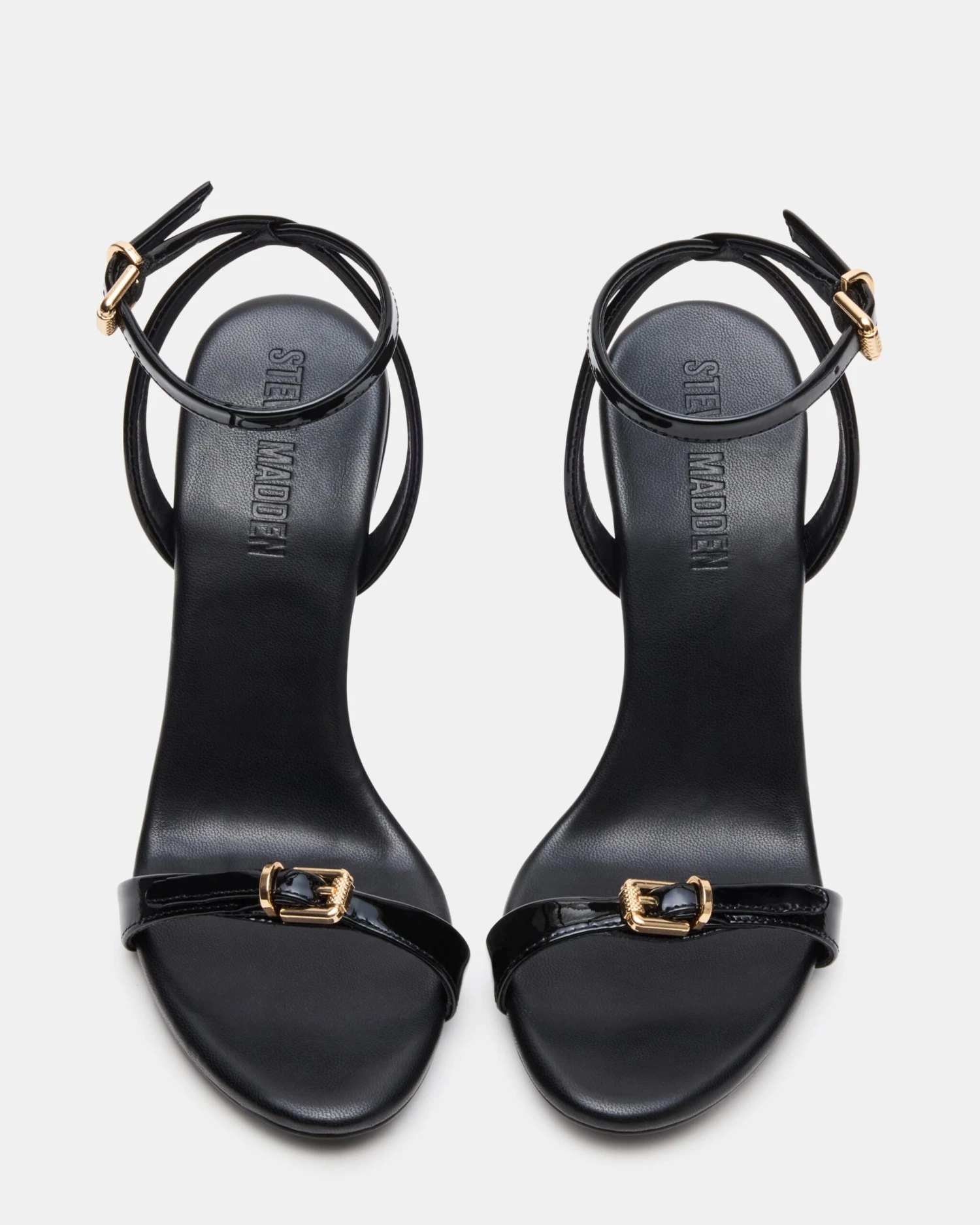 The FOXX stiletto heel boasts a charming buckle detail, complementing the open-toe design for a sophisticated look. The strappy construction provides stability and support, making these heels perfect for any occasion. Elevate your style with these stunning and elegant heels.