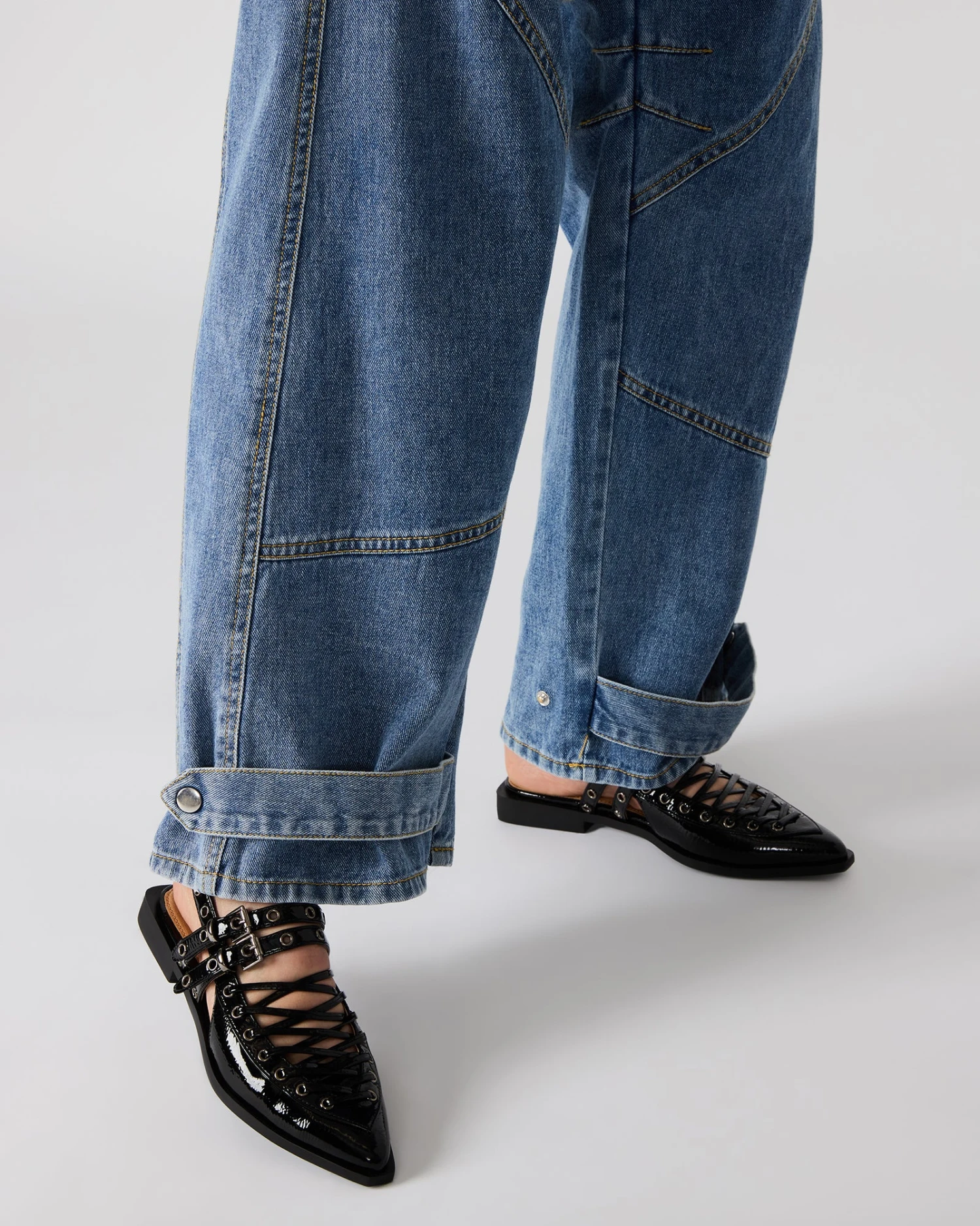 These GALANTI ballet flats feature a pointed-toe design and a slingback strap, creating a sleek and stylish look. The moto-inspired details add a touch of edginess to this classic silhouette. Perfect for any occasion, these flats provide comfort and fashion all in one.