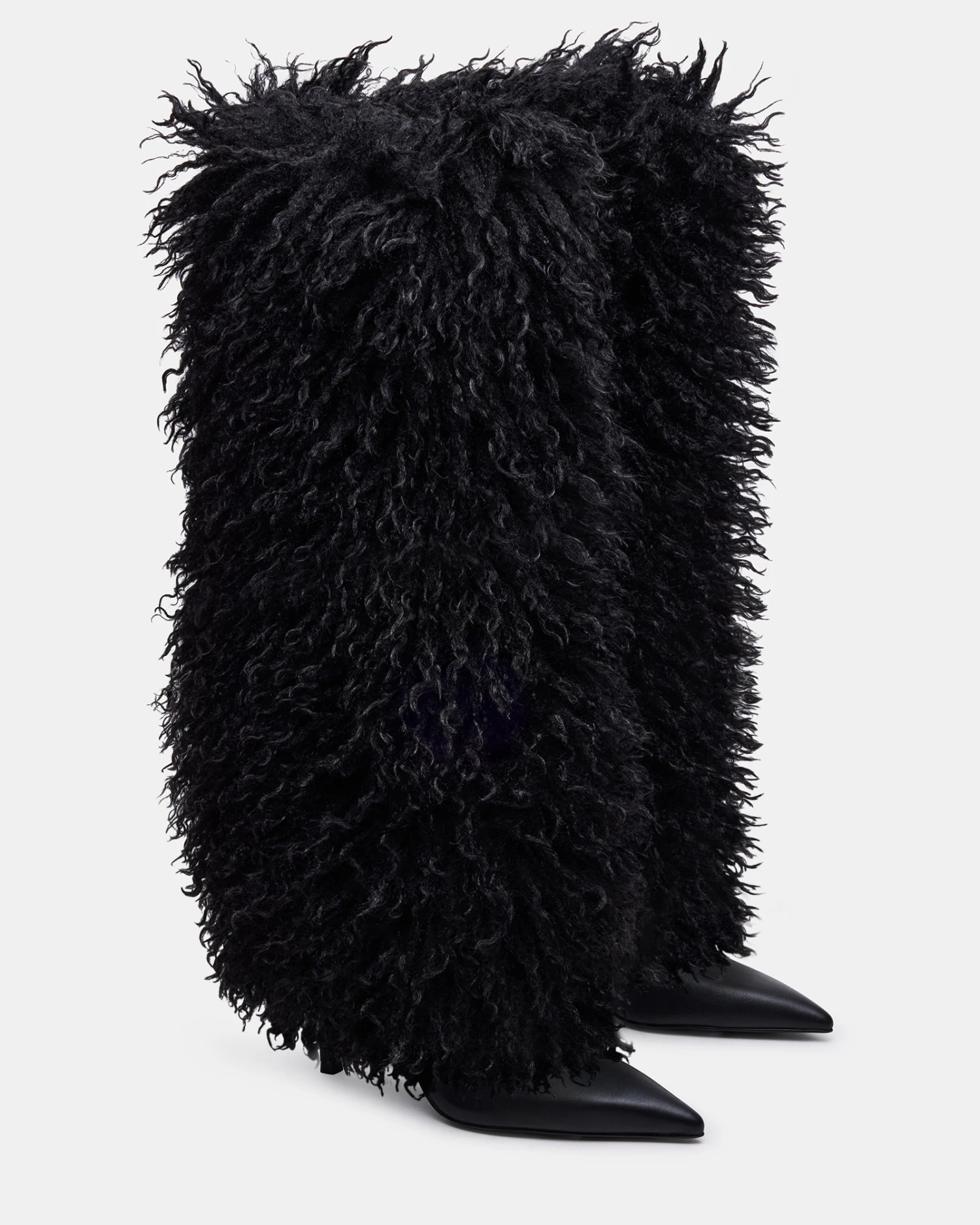 Experience sleek and edgy style with ICON. With a heeled stiletto and fold-over faux fur cuff, these knee-high boots are perfect for adding a touch of glam to any outfit. The pointed-toe design adds a chic touch, making these boots a must-have for any fashion-forward shoe lover.