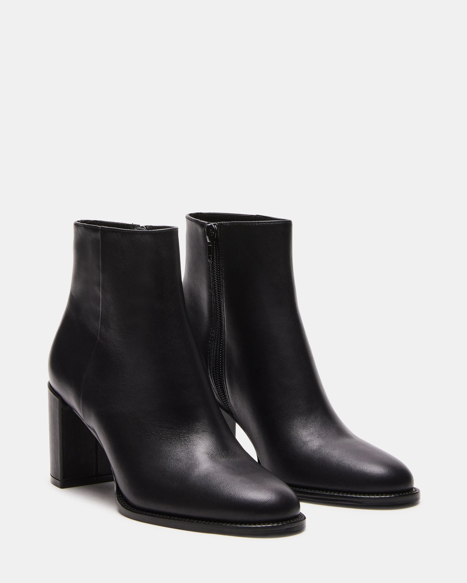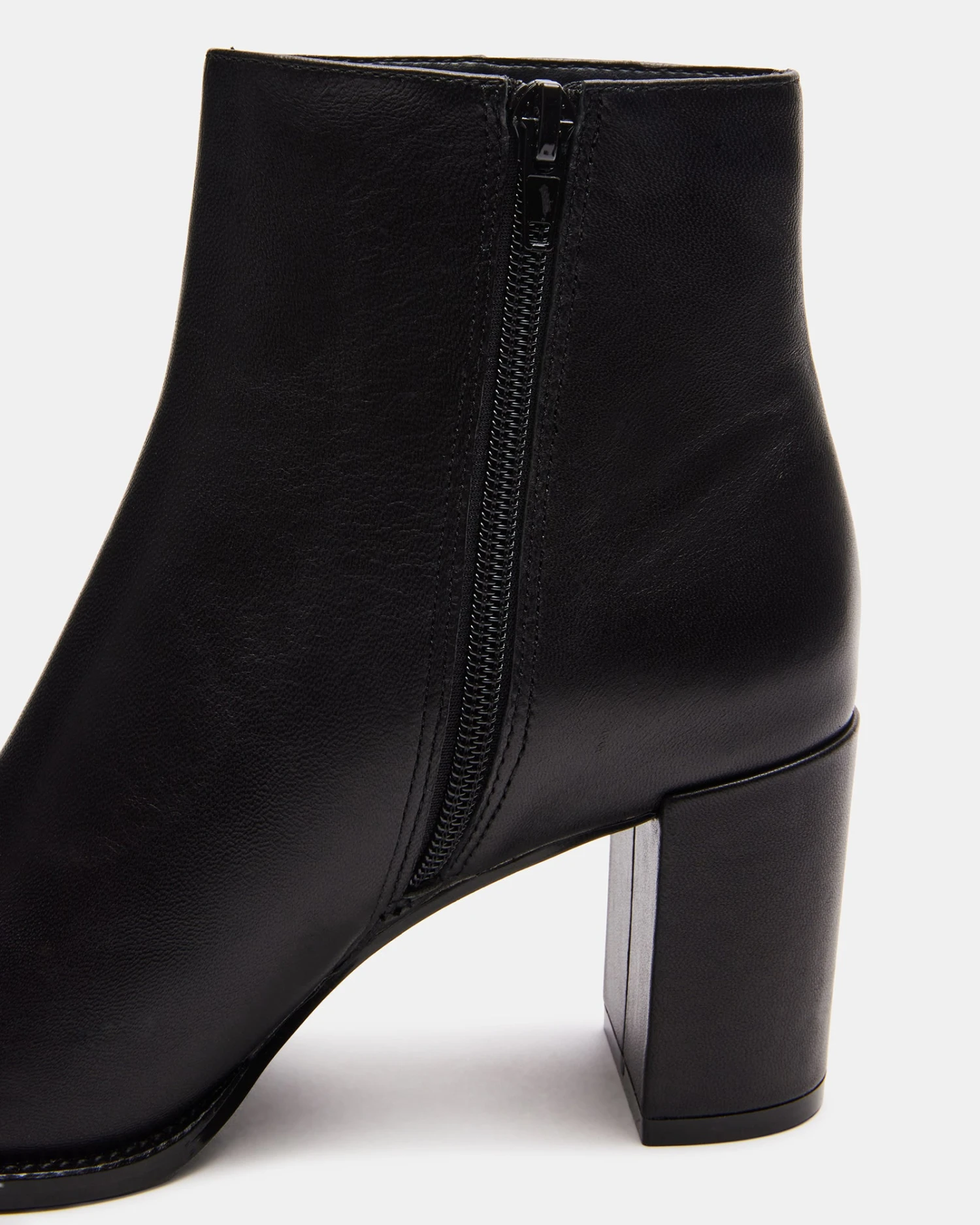 The JOZIE bootie is a cropped ankle height design with a sleek upper set on a matched block heel for an understated monochrome look.