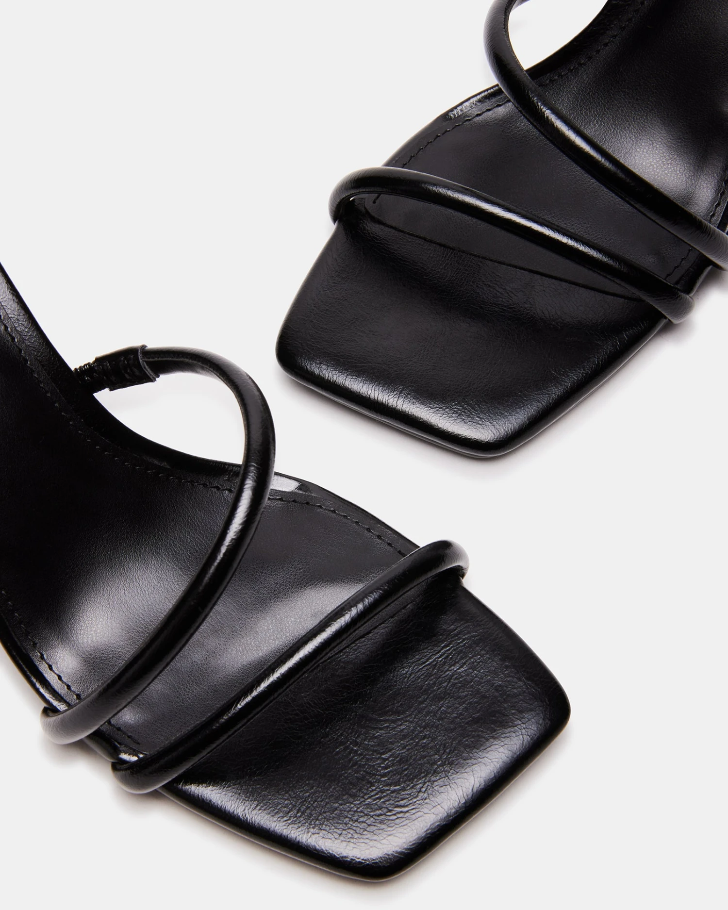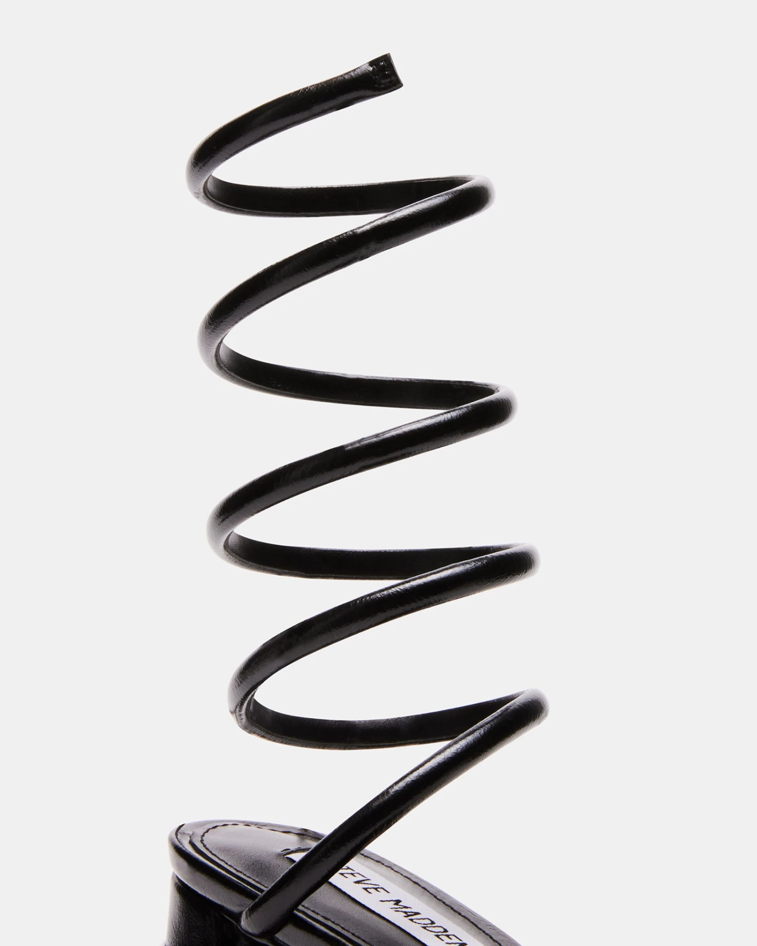 Dimensional tubular straps crossed over the foot and coiled around the ankle secure the LOPEZ sandal to a square toe sole with a block heel.
