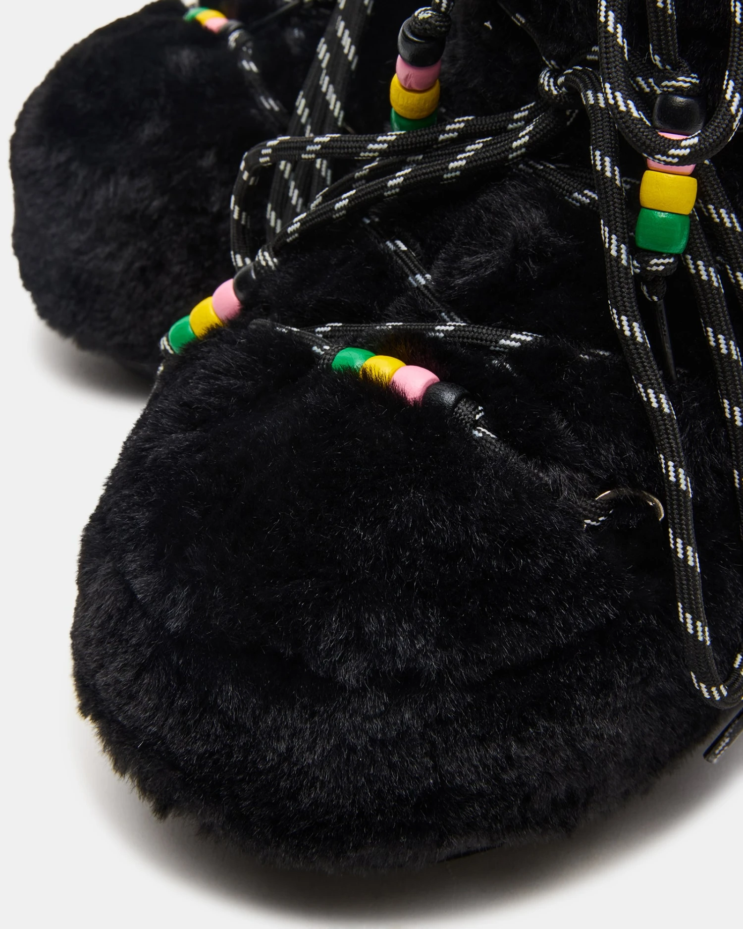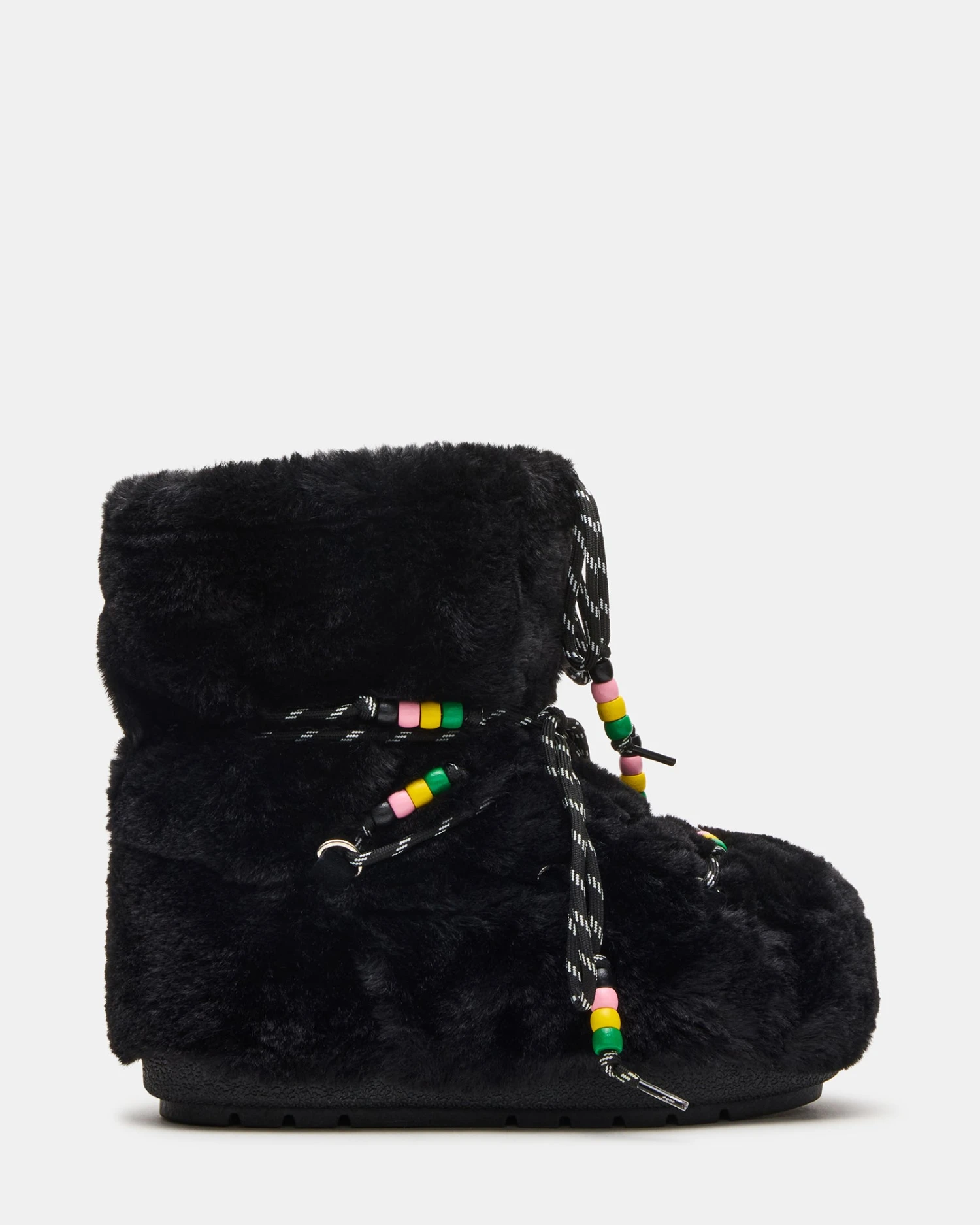 Elevate your footwear collection with the MIRO faux fur bootie, featuring a faux fur lining for warmth and comfort. Its chunky silhouette offers a bold, contemporary edge, while the multi-colored bead accents add a unique, artistic touch. Designed for both style and durability, this lace-up bootie seamlessly blends fashion-forward details with practical wearability.