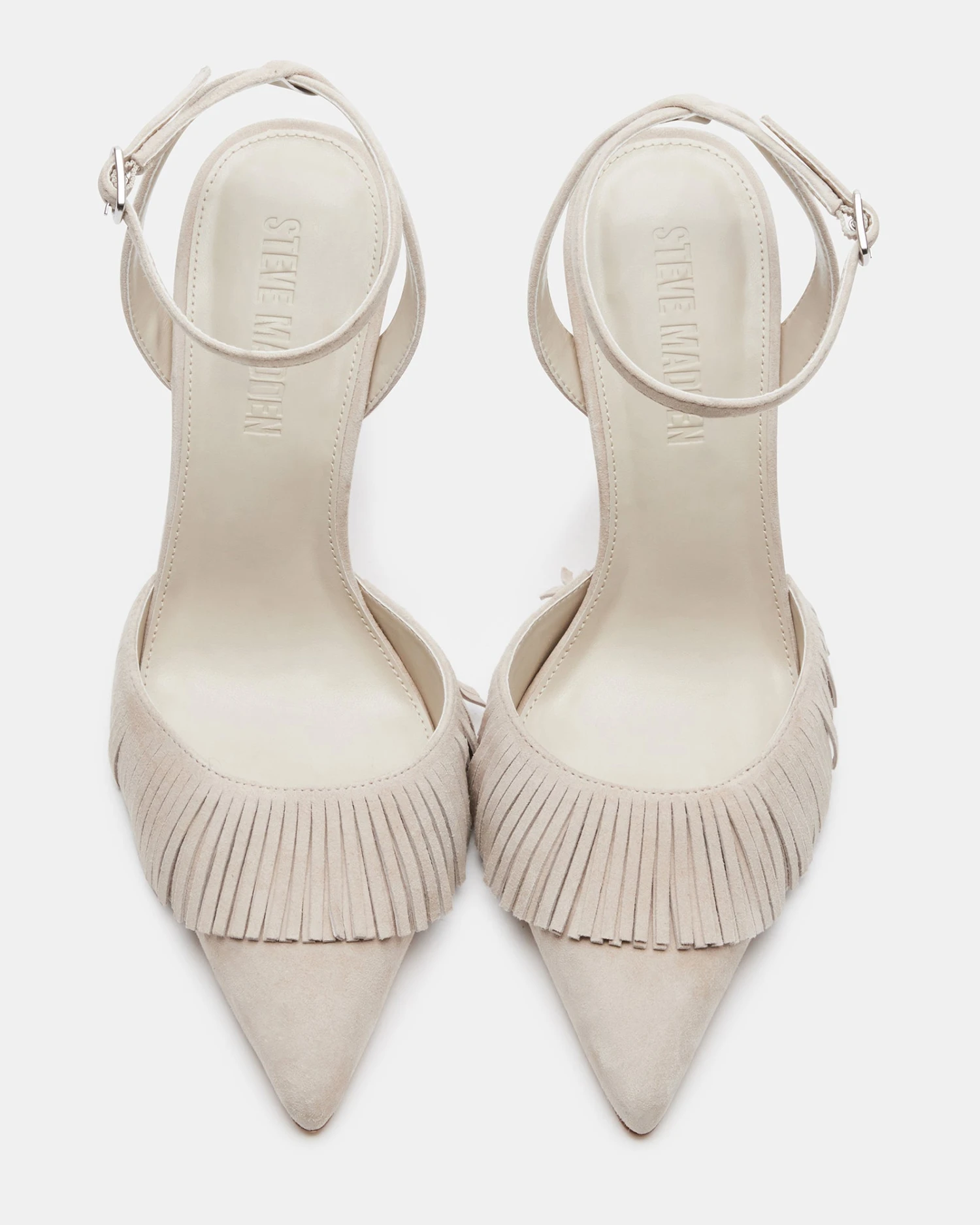 Expertly crafted and designed for sophistication, the QUALLEY features a pointed-toe heel with a crisscross back and ankle strap for added support. Its pump design and fringe detailing add a touch of luxury to any look. Elevate your wardrobe with these must-have heels.