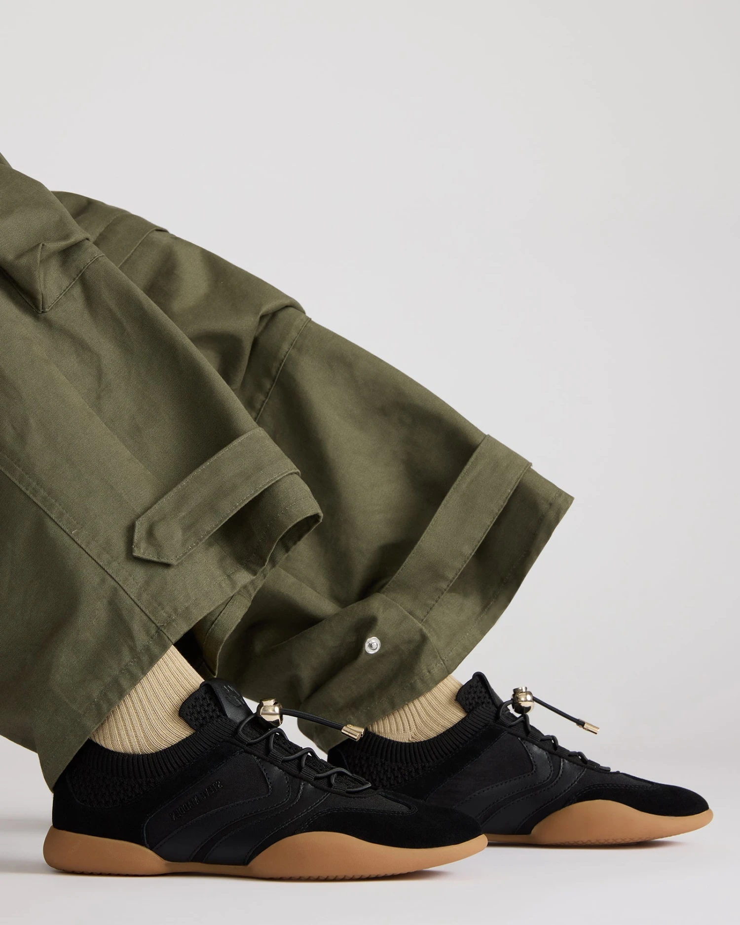 - Textile, suede, and synthetic upper material with rhinestones