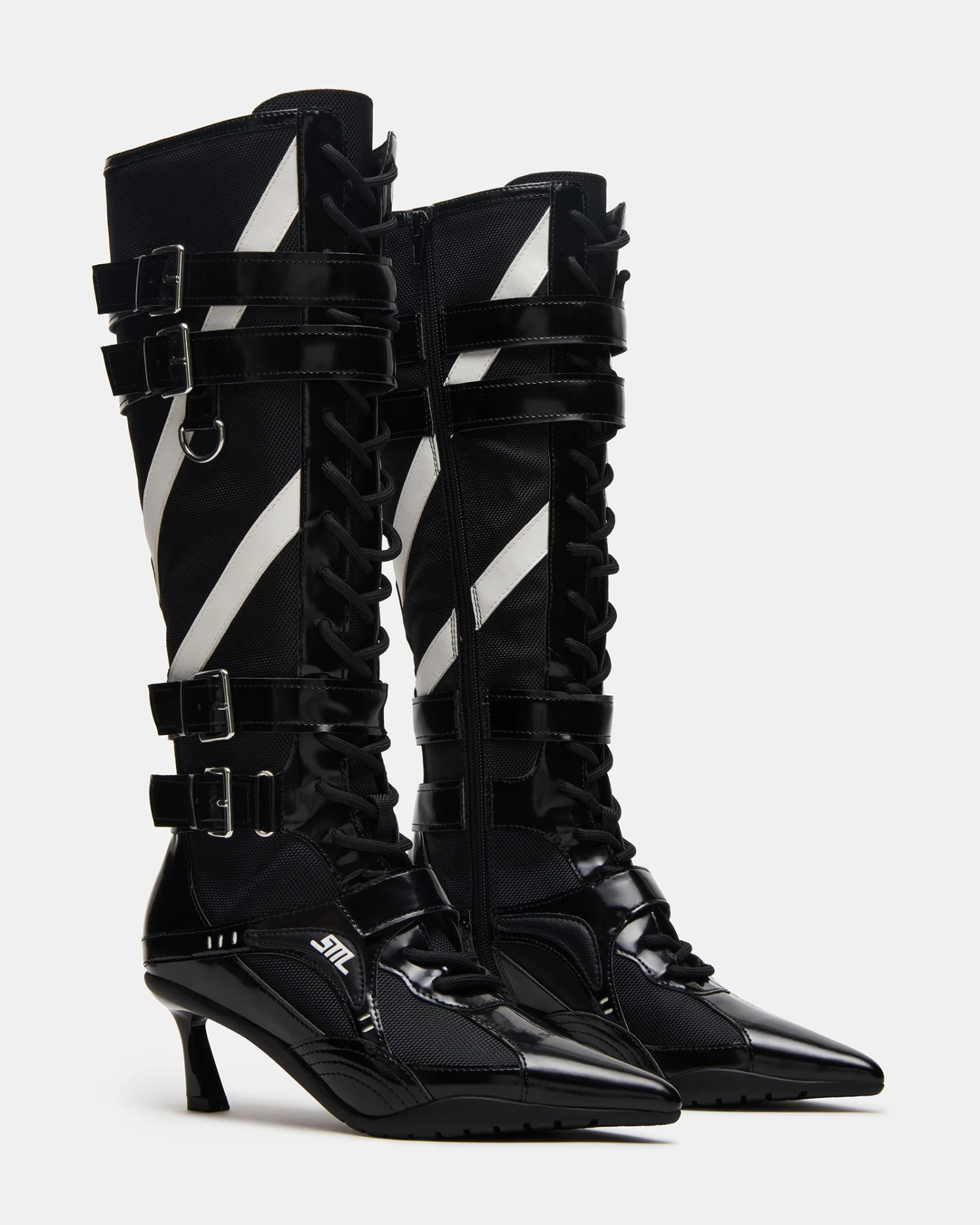 Introducing the STARK pointed-toe kitten heel knee-high boot. With chic buckle details, these boots elevate any outfit while providing ultimate comfort. Perfect for the fashion-forward individual looking for both style and functionality in their footwear.